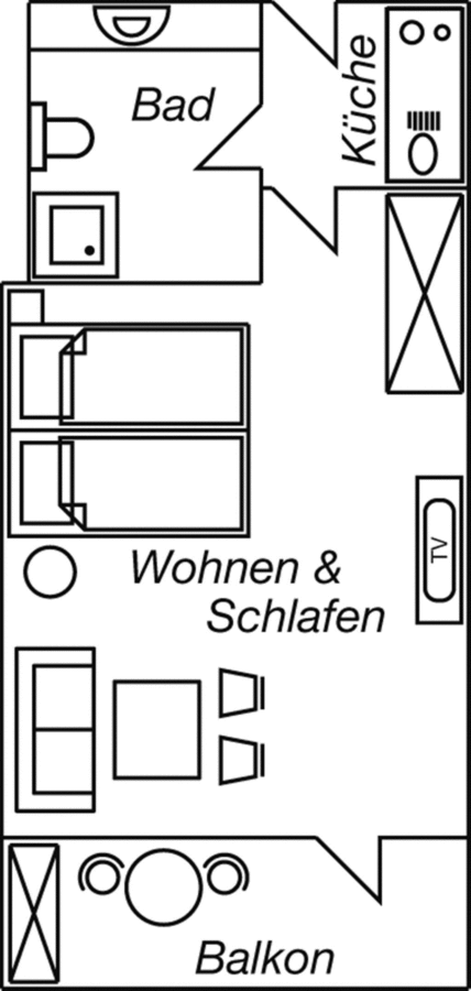 - 1 Zimmer (Wohn-/Schlafbereich)
